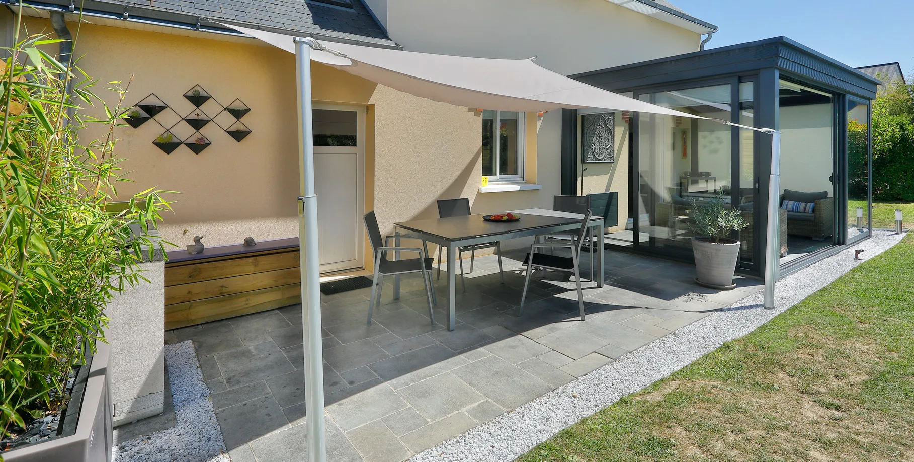 De bondgenoot van uw terras om aangename momenten door te brengen beschut tegen de zon! Uitschuifbare functie om de hoogte van uw doek naar wens af te stellen