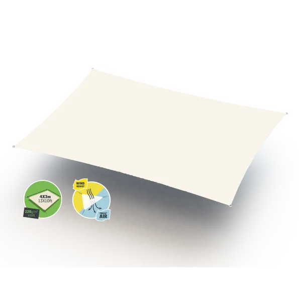 Kies voor een efficiënte en stijlvolle schaduwoplossing. Met de rechthoekige Gard&Rock-doeken van 4*3m beschermt u zich tegen de zon en geeft u uw tuin een decoratieve toets. In combinatie met de palen kan u overal in uw buitenruimte schaduwzones aanbrengen. Dit product is gemaakt uit HDPE 220g/m2 met microperforaties waardoor u over een kwaliteitsvol product beschikt met een ivoor.