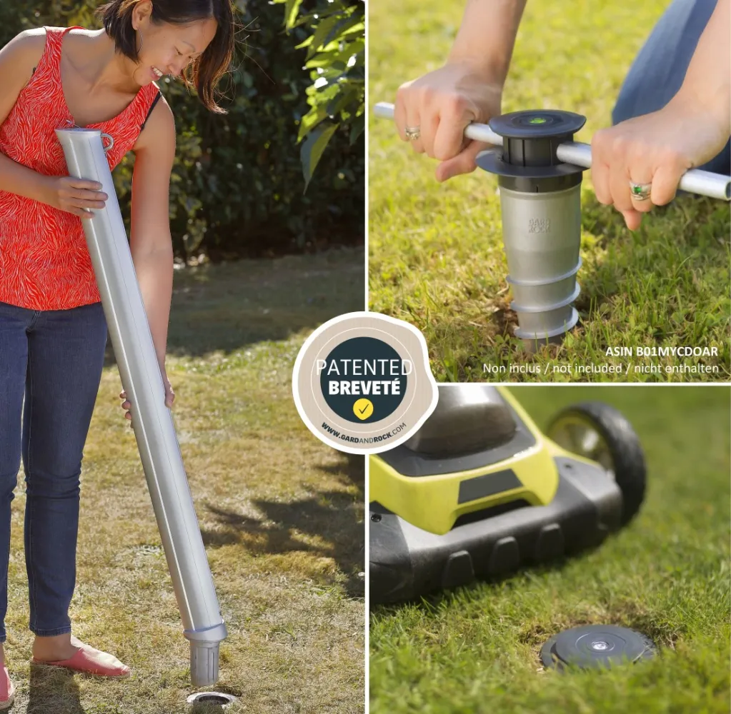 Praktisch om uw buitenruimte snel in te richten (tuin, vijver, zwembad, camping, sportterrein...). Met de koppeling voor de producten van het evolutieve Gard&Rock-gamma kan u in een oogwenk uw openluchtuitrustingen (parasols, pergola's, schaduwdoeken, hangmatten, droogrekken, nestkastjes, sportuitrustingen...) vastmaken, verplaatsen en opbergen. De stijlvolle en discrete verankeringspoot past harmonieus in het landschap.