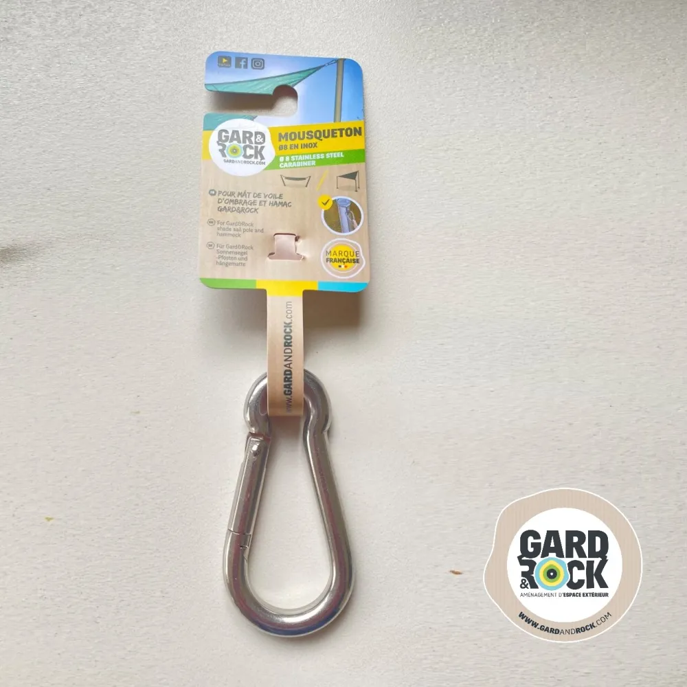 Met deze musketon uit roestvrij staal kan u uw schaduwdoek en hangmat op een stevige, esthetische en verwijderbare manier vastmaken.